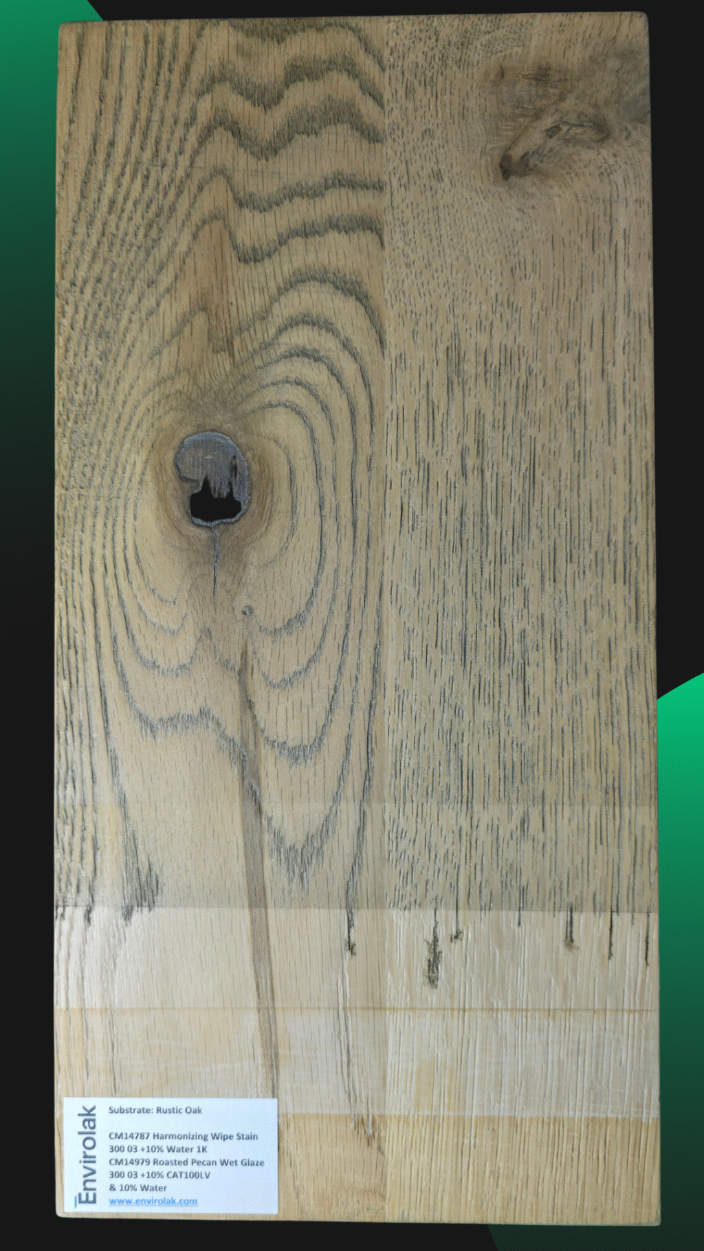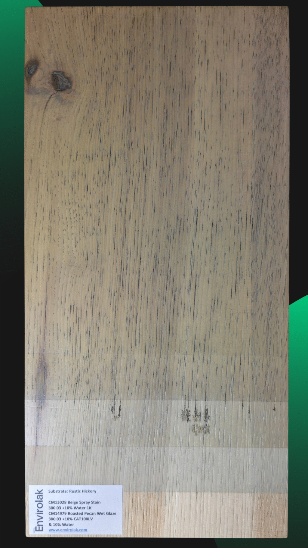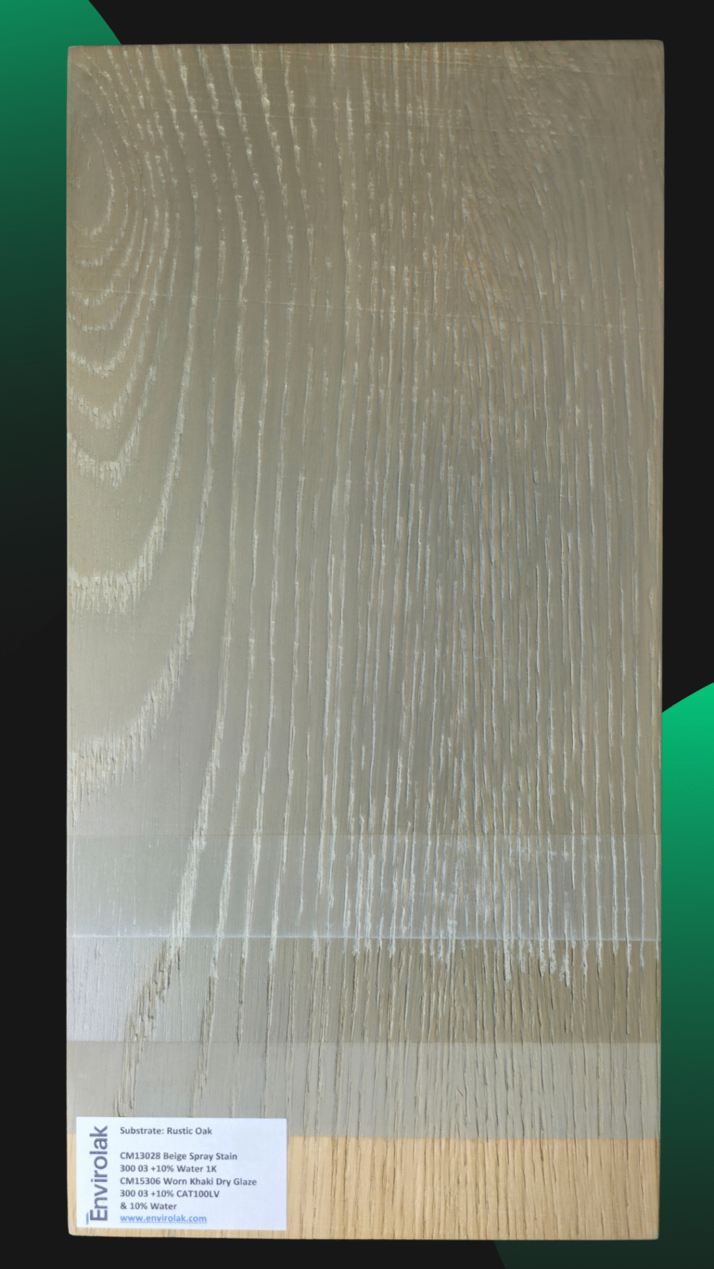 Another panel from our training center, where we explore how base tones and glazes interact to shape the final look. This process features warm undertones and gentle contrast—perfect for projects where subtlety speaks volumes. On rustic oak.