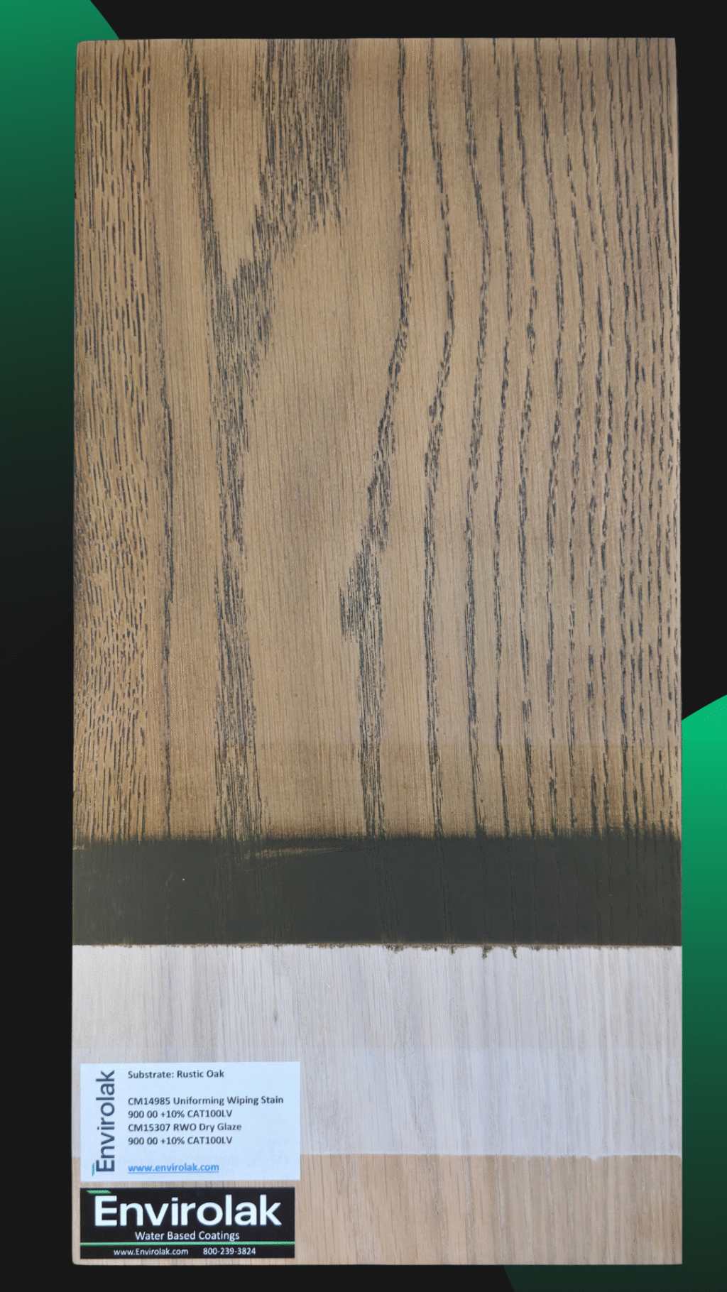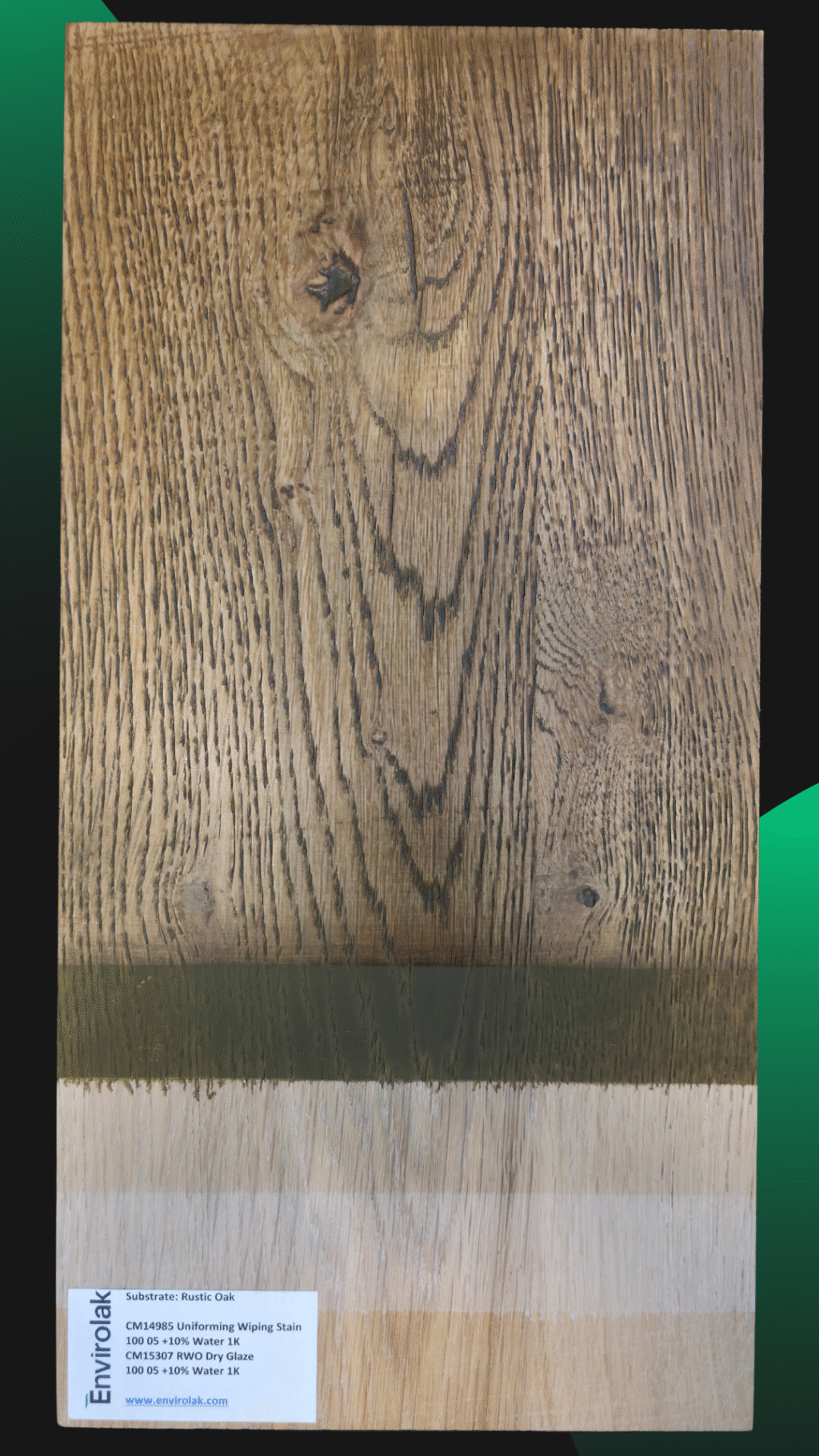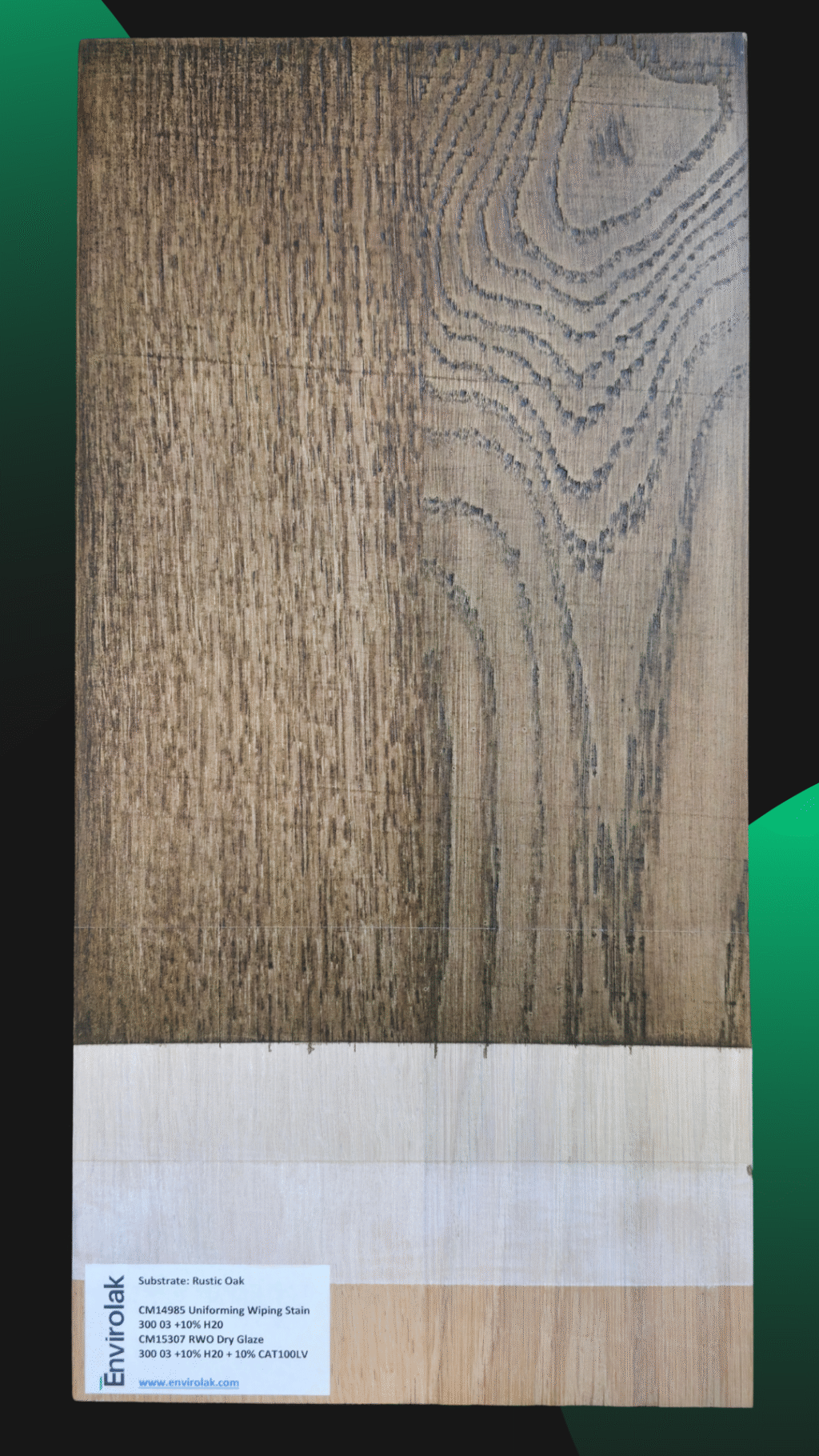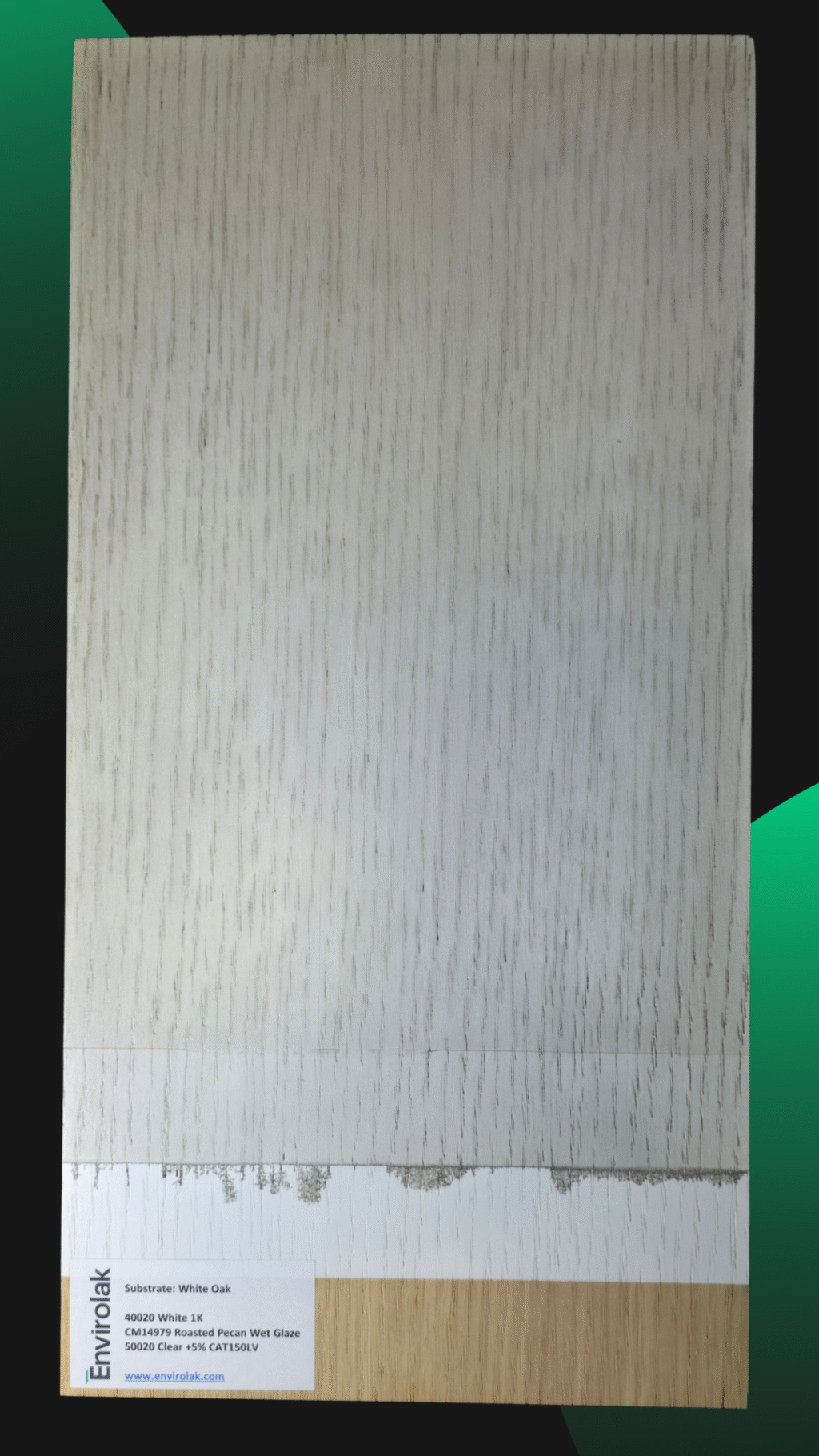 Another panel from our training center, where we explore how base tones and glazes interact to shape the final look. This process features warm undertones and gentle contrast—perfect for projects where subtlety speaks volumes. On rustic oak.