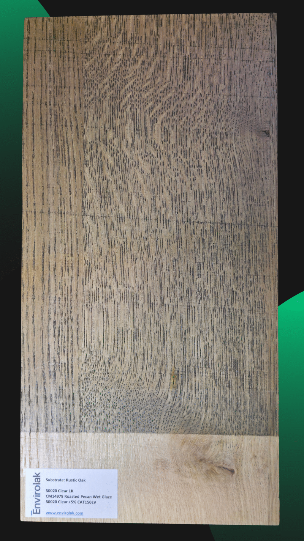Check out this panel from our training center, finished with a zero sheen clear coat for a smooth, natural look that still shows depth and character.