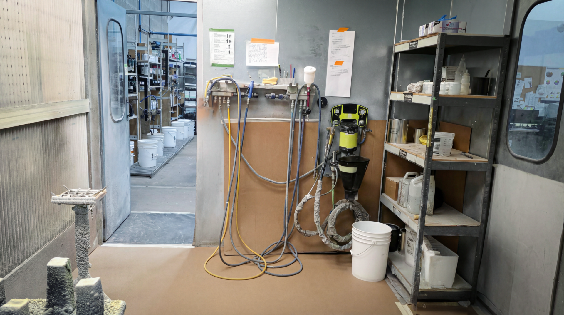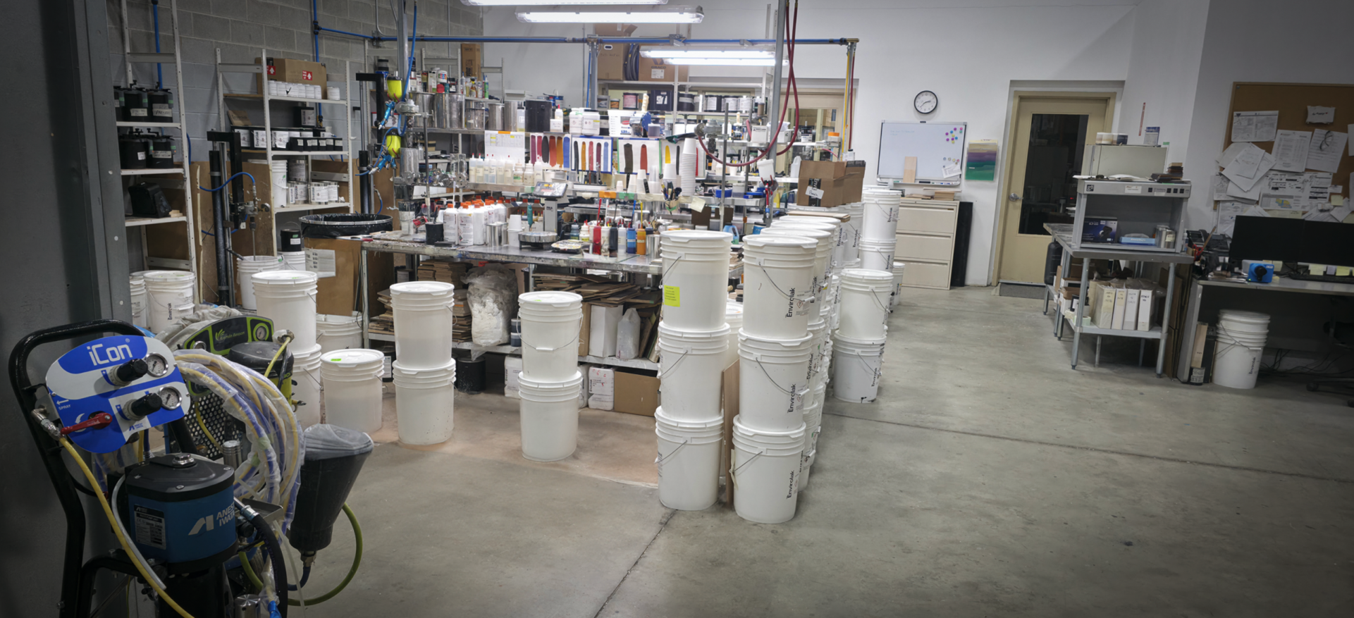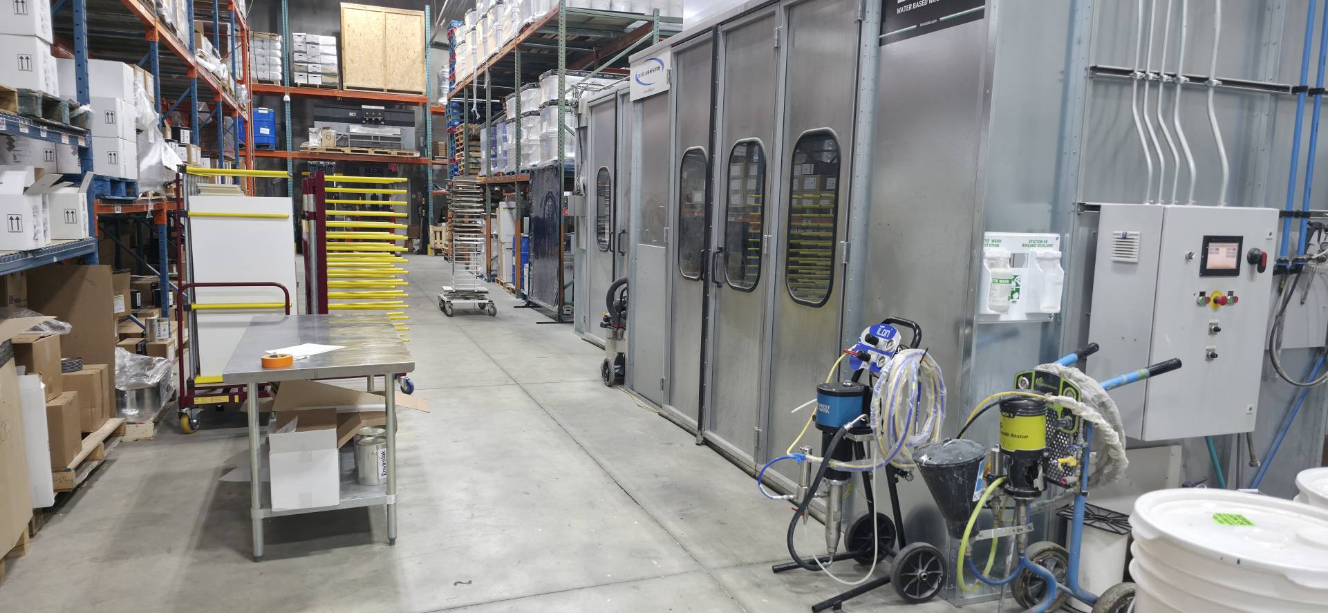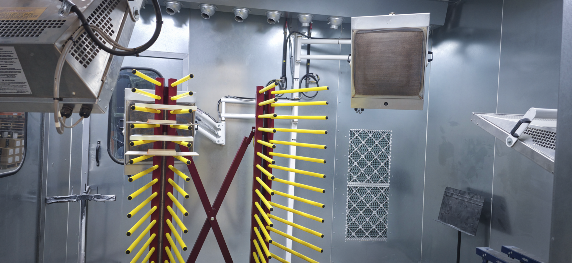 Installed in 2017, our lab and colour matching facility boasts a full size walk-in spray booth with stationary paint pumps and an attached drying room. The drying room features recirculating air and a catalytic infrared curing system to complement our finishes.